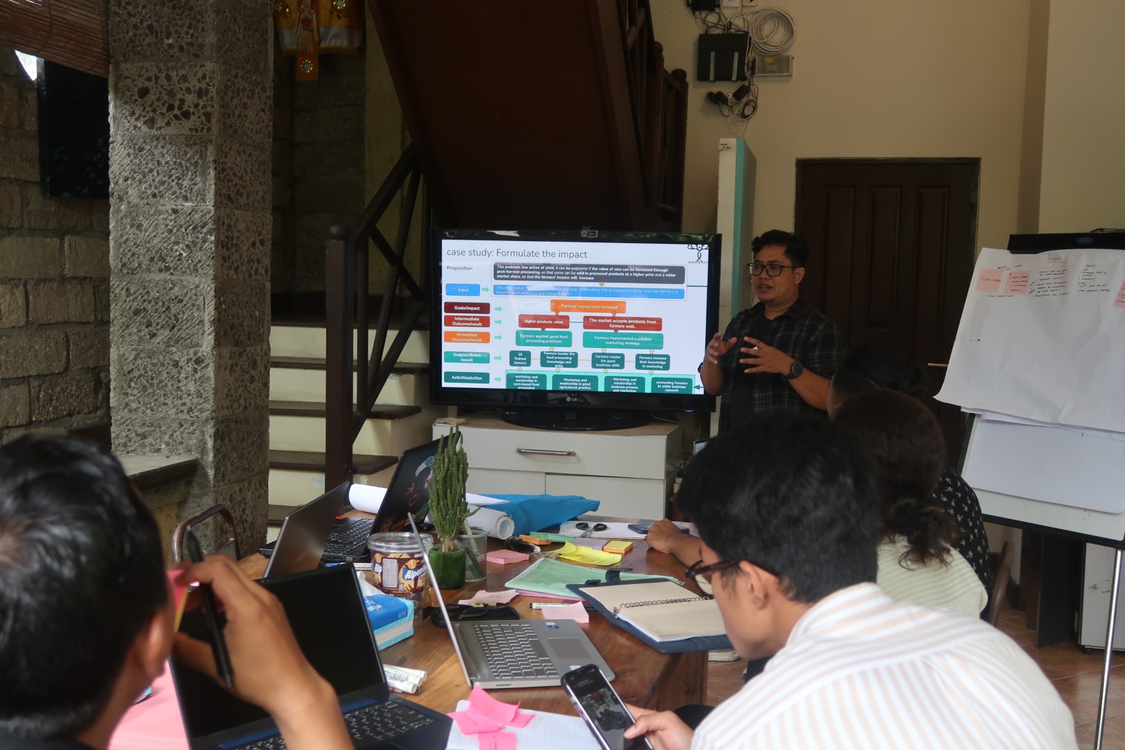 Interactive sessions covered key topics such as Theory of Change (ToC), impact formulation, outcome measurement, monitoring and evaluation design, and impact reporting. Participants from FINNS Bali and Stella’s Child engaged in group exercises, brainstorming, presentations, and hands-on practice using real-life case studies. These activities enabled them to build tailored ToC frameworks and key performance indicators aligned with their programs.